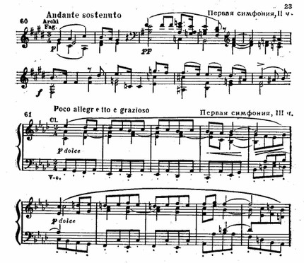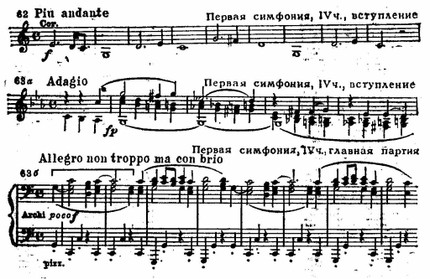 Эта важнейшая тема сменяется новым мотивом, широкие интервальные скачки которого будут позже, в Allegro, выражать состояние отчаяния: