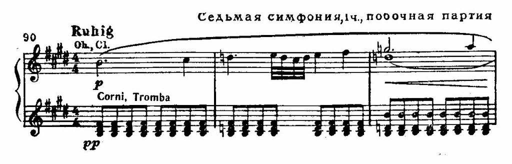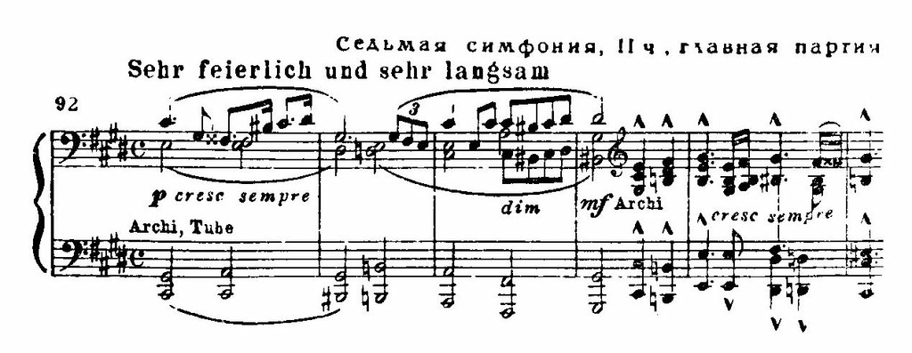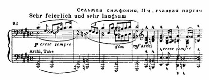 Мелодию запевают теноровые тубы (они известны также под названием «вагнеровских» или «валторновых»); суровая поступь струнных прерывает ее; рождаются выразительнейшие, подголосочного склада речитативы, и вдруг весь оркестр разражается криком боли и отчаяния: