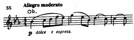 Эта же тема в более быстром движении, придающем ей характер грациозного восточного танца, становится основой побочной партии, создавая жанровый контраст к светлой пасторальной теме главной партии.