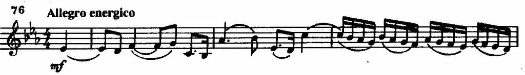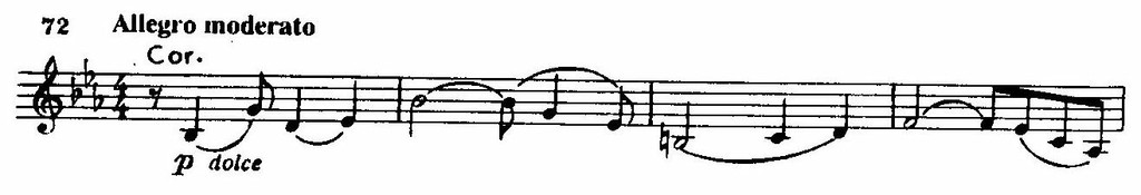 Отдельные элементы приведенной темы входят в состав новых тем, появляющихся в следующих частях симфонии, что сообщает строению цикла элементы монотематизма. Легко заметить родственные ей обороты в первой теме второй части,