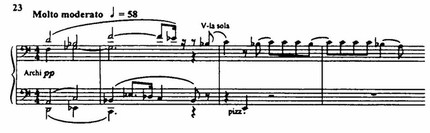 «Я долго работал над первой частью, чтобы добиться сжатой и строгой формы, без ослабления внутренней напряженности, — вспоминал композитор. — Allegro должно противостоять обессиленному, как бы подавленному мотиву вступления». Это вступление (Molto moderato) начинается мрачным, скованным, аккордового сложения хоралом у низких струнных, звучащим почти органно.