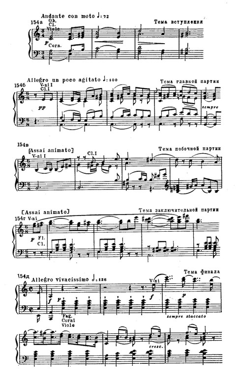 Новаторство в трактовке формы проявляется прежде всего в интонационном единстве тем и частей. Так, лирической теме вступления интонационно родственны главная тема первой части, побочная тема (которая является лишь полифонизированным вариантом главной), заключительная тема, главная тема финала и тема коды: