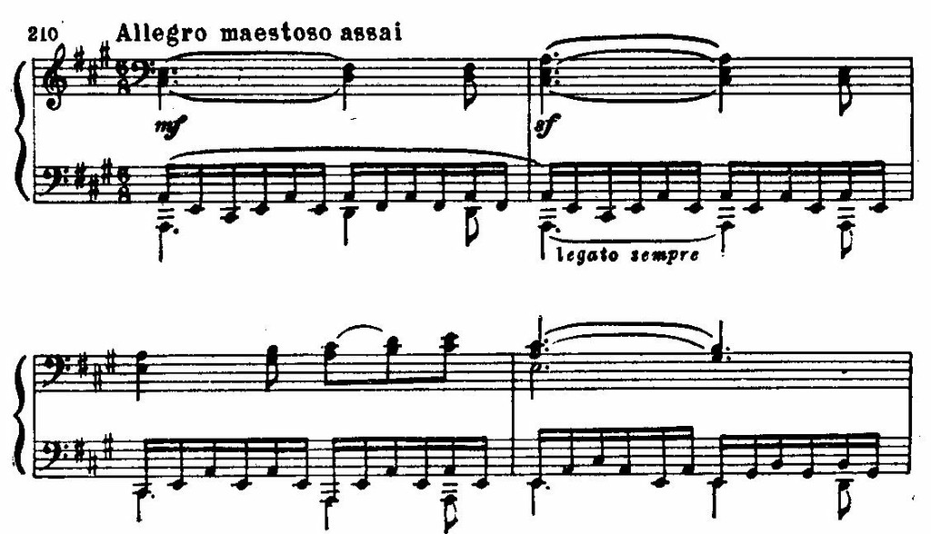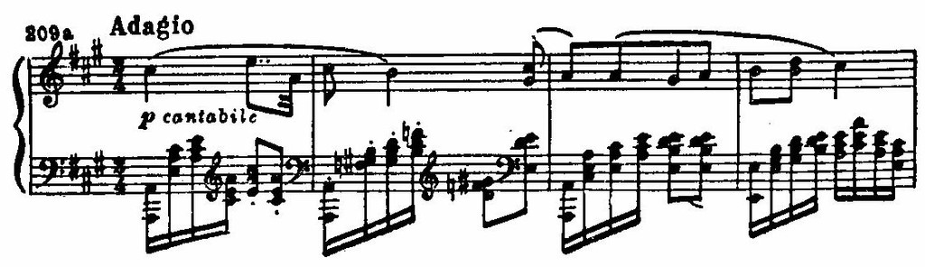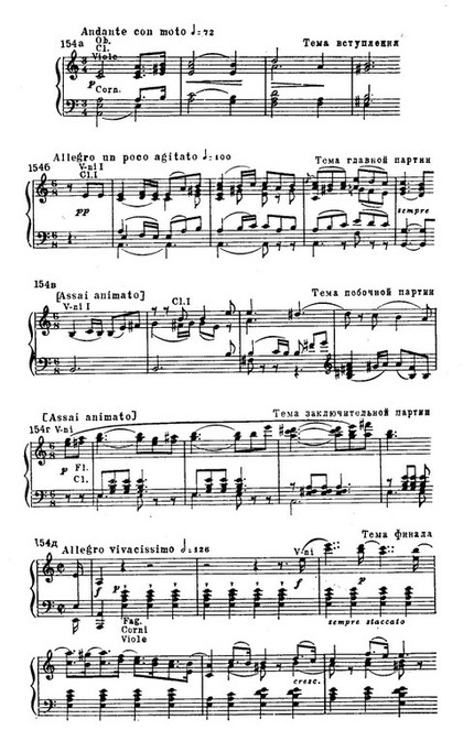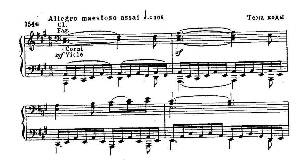 И в Adagio, и в бурно-стремительном финале присутствуют интонации главной темы симфонии; окончательно же ее трансформация происходит в торжественном апофеозе — коде всей симфонии: