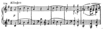 Эта середина оттеняет драматизм крайних частей менуэта с их интенсивным и напряженным развитием (путем мотивного членения, применения имитационно-полифонических приемов, хроматизации средних голосов в заключительных тактах).