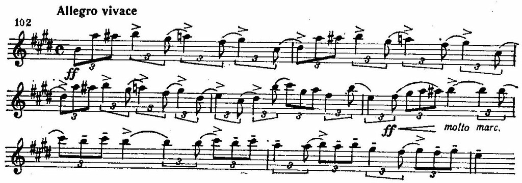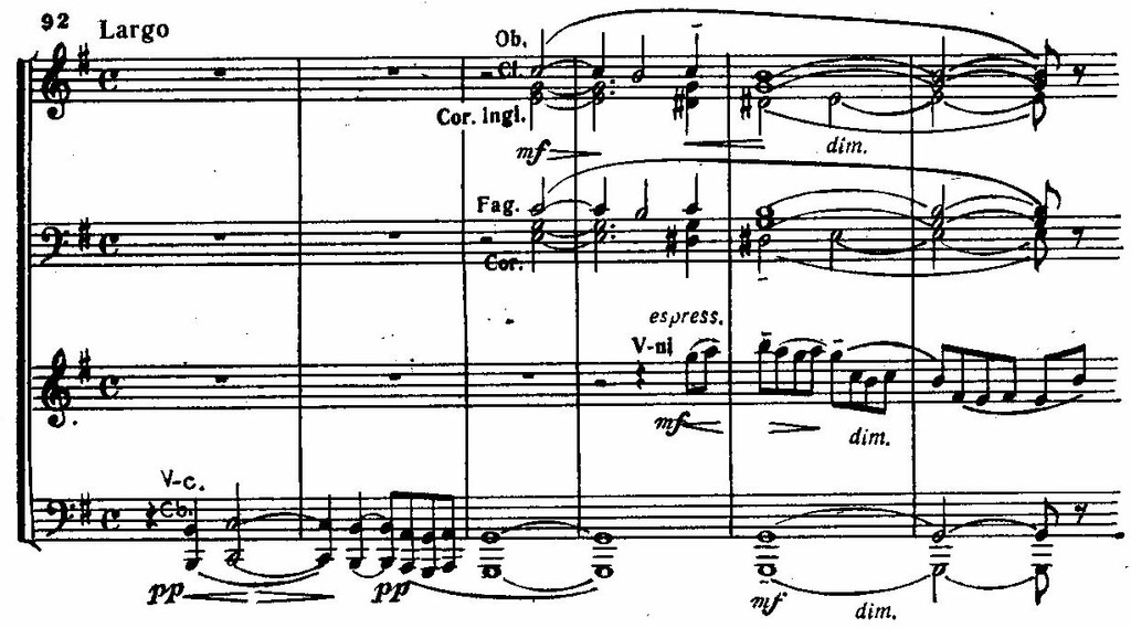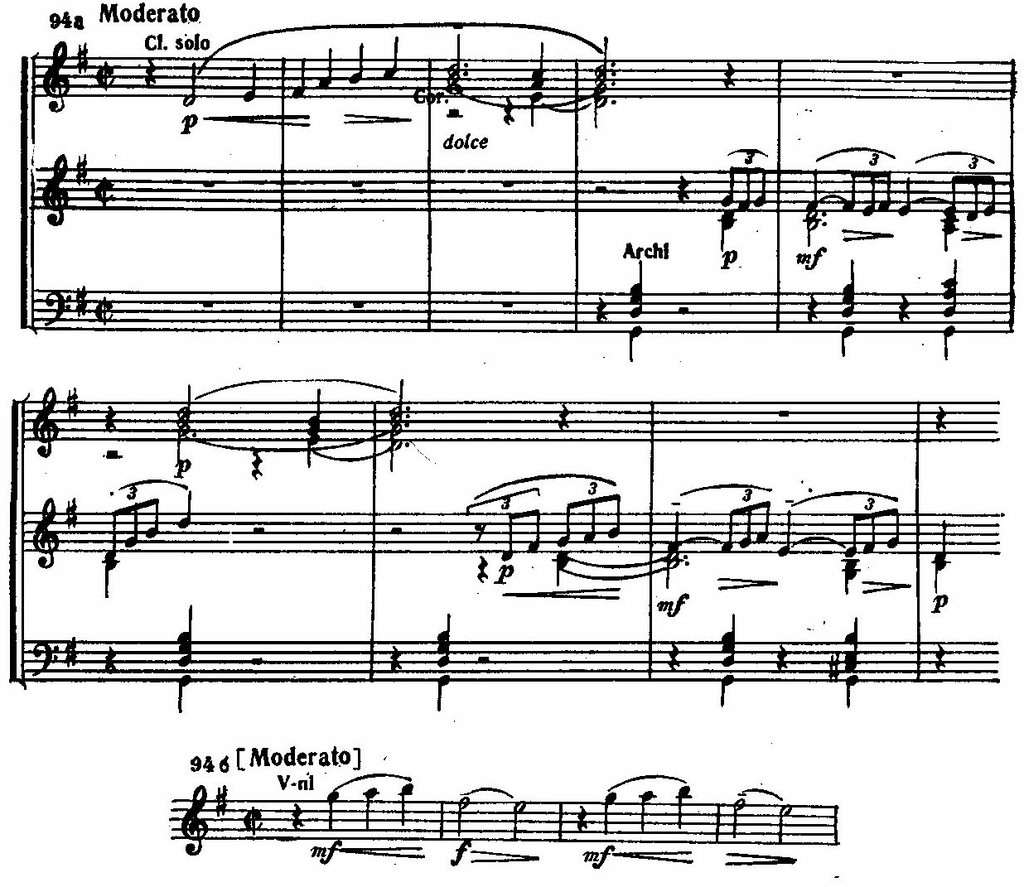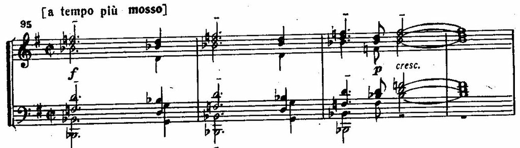 Лишь в конце второго предложения, основанного на плавно парящем опускании мелодической линии, достигается ясное ощущение тонической устойчивости.