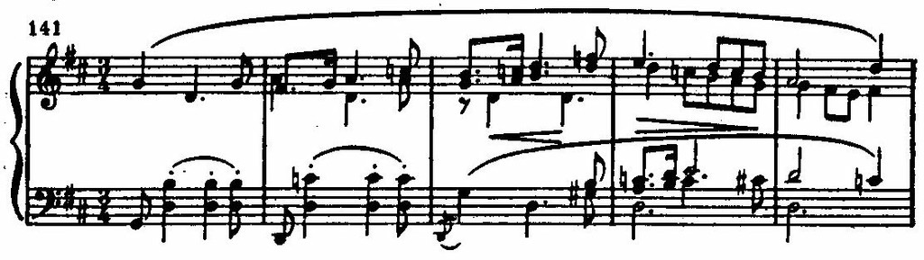 Взамен динамических факторов выдвигается новый элемент — колористическое толкование ладо-тональных функций. Побочная партия проходит в экспозиции в G-dur, а в репризе — в D-dur. Терцовые ладо-тональные сочетания (h-moll — G-dur, h-moll — D-dur) — это тонкие красочные оттенки, от которых светлеют сумрачные тона h-moll.