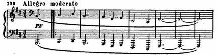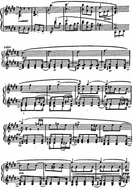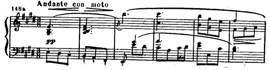 Трепетное движение шестнадцатых у скрипок, приглушенное pizzicato струнных басов создает выразительный фон, на котором вырисовывается как бы парящая, элегически задушевная мелодия гобоя и кларнета.