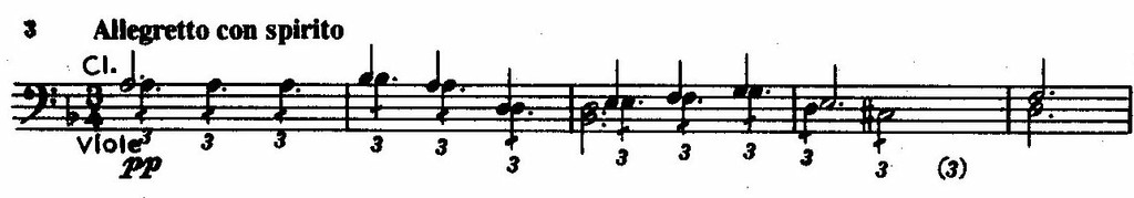 В отношении концепции Третья симфония также находится в русле симфонизма Чайковского 70-х годов; это прежде всего некий эмоциональный путь от индивидуального к народно-массовому — от первого сонатного allegro к финалу. Наиболее привлекательны средние части. Они в высокой степени воплощают как раз те свойства музыки, в которых принято отказывать Танееву: сердечность, общительность, простоту. В образном строе и музыкальном содержании симфонии выражен синтез, условно говоря, лирико-драматических и народно-эпических черт, который присутствовал и в предыдущих двух симфониях и «составляющие» которого восходили к Чайковскому и петербургской школе. Не случайно в рукописи финала есть пометка автора «Style Petersbourgeois» (возможно, не лишенная самоиронии). «Петербургский стиль» проявляется в финале через тематизм народного склада — песенный, хороводный. Влияние Чайковского сказалось как в общей романтической окрашенности, особенно первой части, так и в деталях музыкального языка (задержаниях, отдельных мелодических оборотах, развитии по секвенциям и т. д.). Но «удельный вес» индивидуальных черт, присущих творческой манере самого Танеева, в этой симфонии очень возрос. С первых же тактов улавливается несколько иной тип эмоциональности, иной «уровень лиризма». Тема сонатного allegro первой части (кларнеты, удвоенные триолями альтов, рр) отмечена сумрачным, затаенным колоритом и предвещает уже вполне танеевский тематизм созданного двумя годами позже, тоже ре-минорного квартета (нотный пример 3; ср. с нотным примером 11).