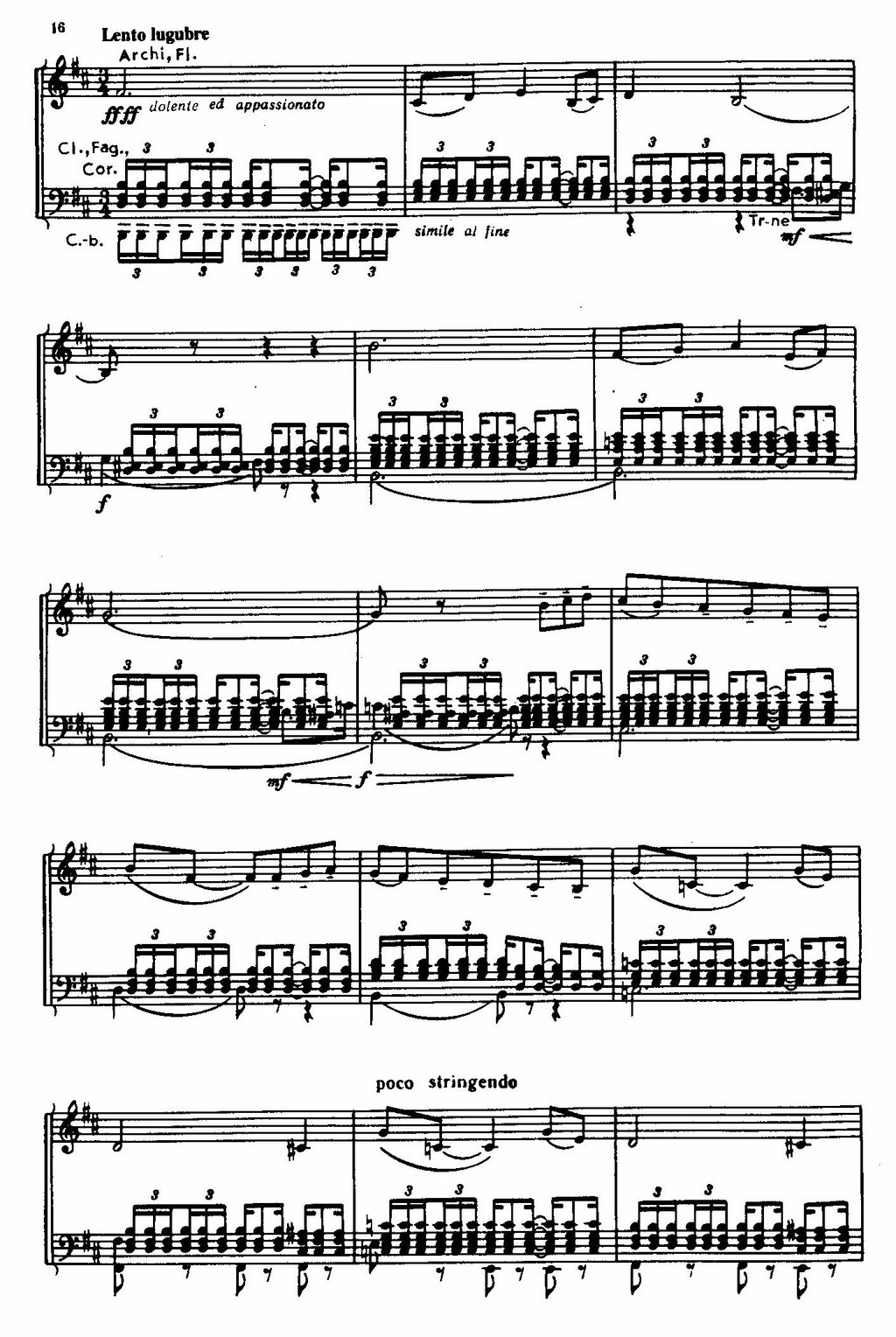 Эта программа воплощена в трагической медленной части, совсем не похожей на сонатное аллегро, открывающее все симфонии Чайковского. Сопоставлены два контрастных образа — безотрадное, безнадежное, полное отчаяния настоящее и воспоминания о прошлом, светлом и невозвратимом. Крупная трехчастная форма включает ряд тем, развитие которых идет большими волнами.