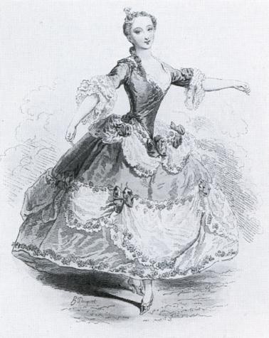 Она выступила в хореографических миниатюрах, которые Прево объединила в дивертисмент «Характеры танца», но, чтобы блеснуть своими талантами, отважилась на новшество. Вместе с партнером Антуаном Лавалем она вышла на сцену в «городском платье» и без масок. Это случилось 17 февраля 1729 года. Публике это понравилось, а начальству – нет. Танцовщица поссорилась с директором Оперы Лебефом и уехала в Англию. Там ее любили и признавали за ней право на эксперименты.