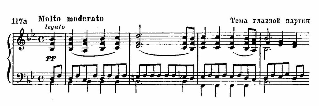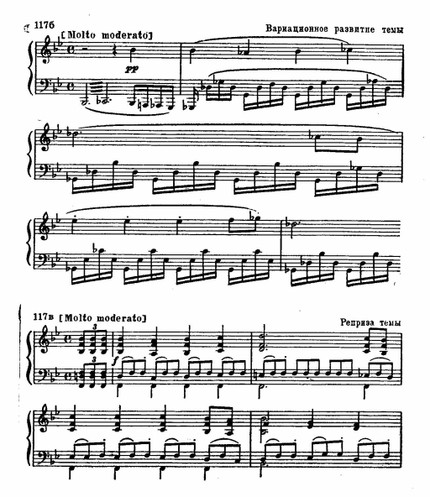 Прекраснейшим образцом фортепианной музыки можно назвать вторую часть Сонаты си-бемоль мажор – исключительно трагедийную и драматичную. Несмотря на трехдольность, особенности ритма уподобляют ее маршу.