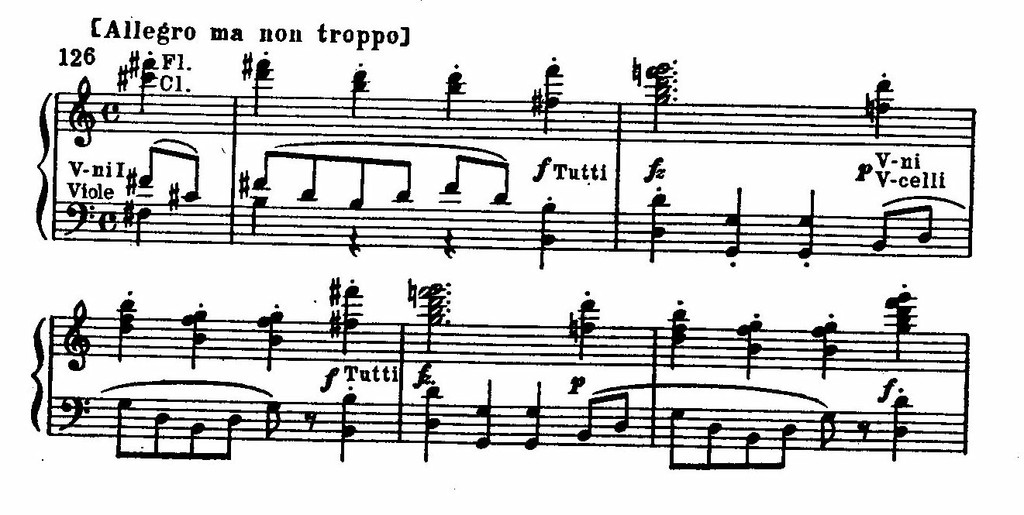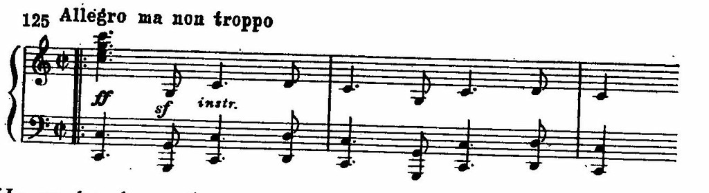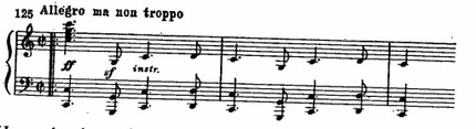 Из ее фанфарообразных интонаций вырастает героический мотив, пронизывающий все разработочные эпизоды. Мощные возгласы тромбонов на фоне сияющего звучания деревянных духовых, смелые гармонические сопоставления и модуляции придают стремительному взлету Allegro яркий романтический колорит: