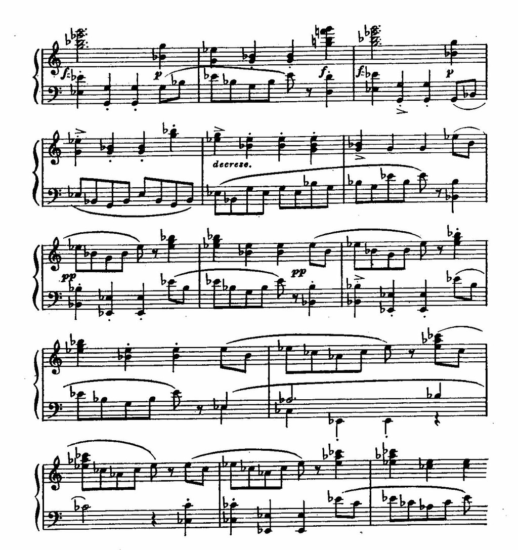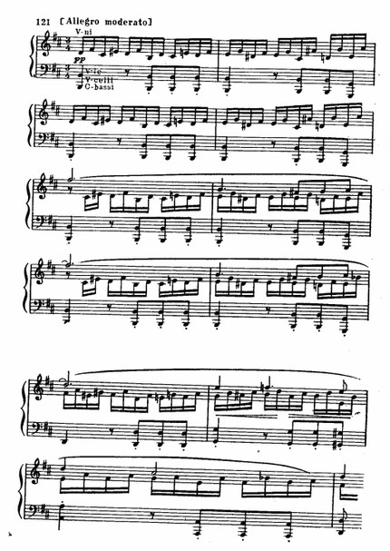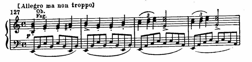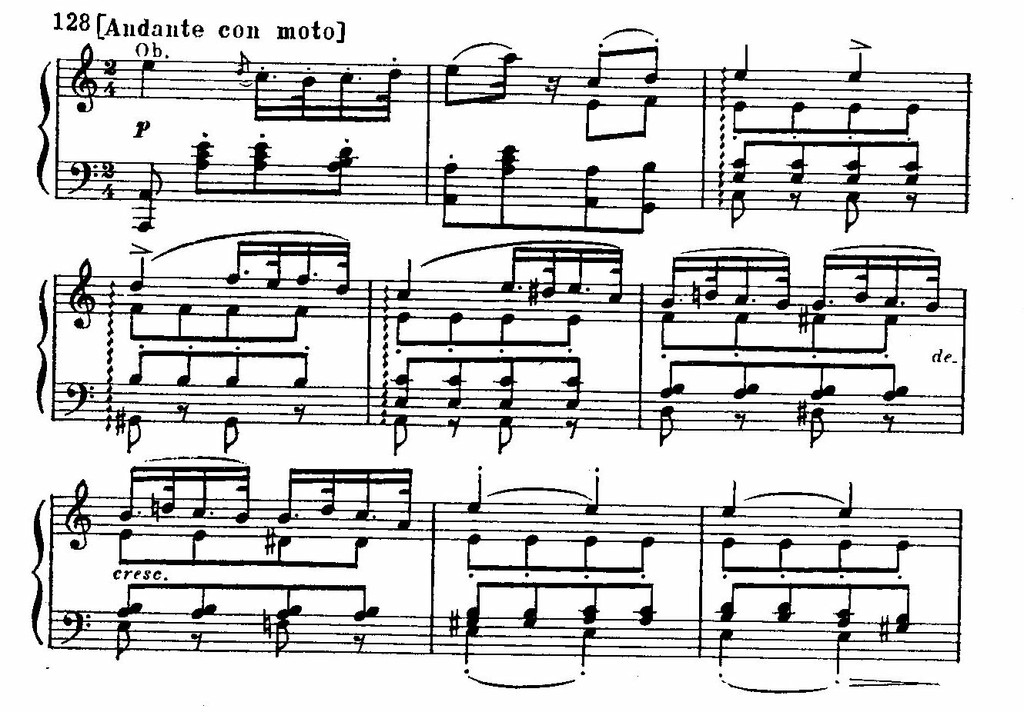 Изумительной красотой отличаются обе ее темы: и широкая певучая главная, изложенная в законченной трехчастнои песенной форме, и побочная, проникнутая тонкими психологическими оттенками которые подчеркиваются чудесными по своей окраске модуляциями. Замечательный эффект угасания найден композитором в самом конце произведения.