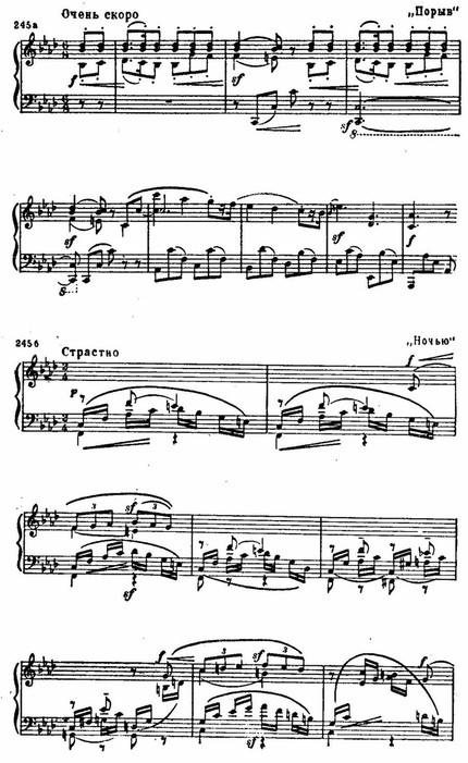 Бурный драматизм «Порыва» близок к такому же его проявлению в пьесе «Ночью». Это лишь разные выражения одного сильного чувства, принимающего характер напряженной страстности в «Порыве», смятения, взволнованности в «Ночи»: