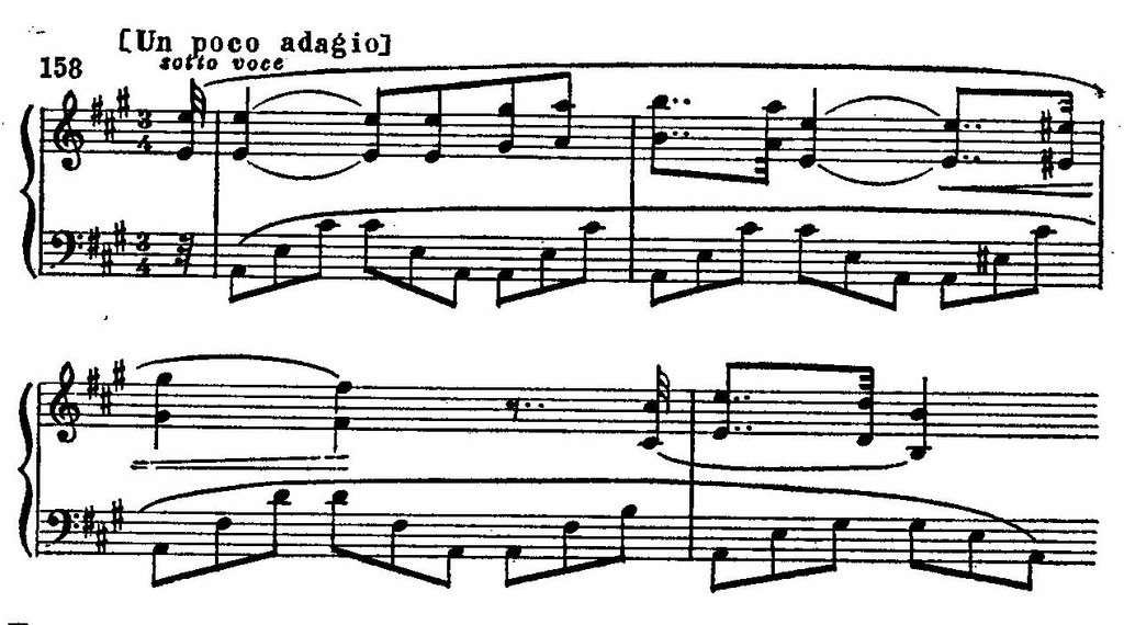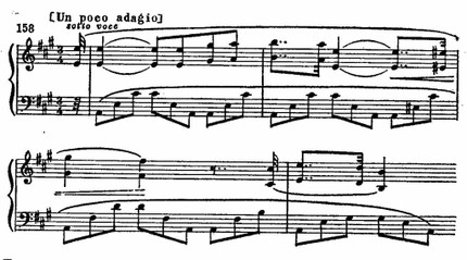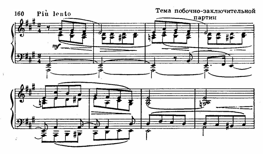 Когда в разработку вторгается декламационная, патетически приподнятая тема вступления, контрастируя с бурным движением ритмов фанданго, этот неожиданный эпизод придает структуре сонатного Allegro черты цикличности.