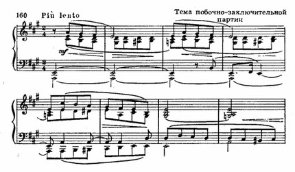Вторая же, А-dur'ная тема, мечтательно-романсного склада характеризует Эвсебия: