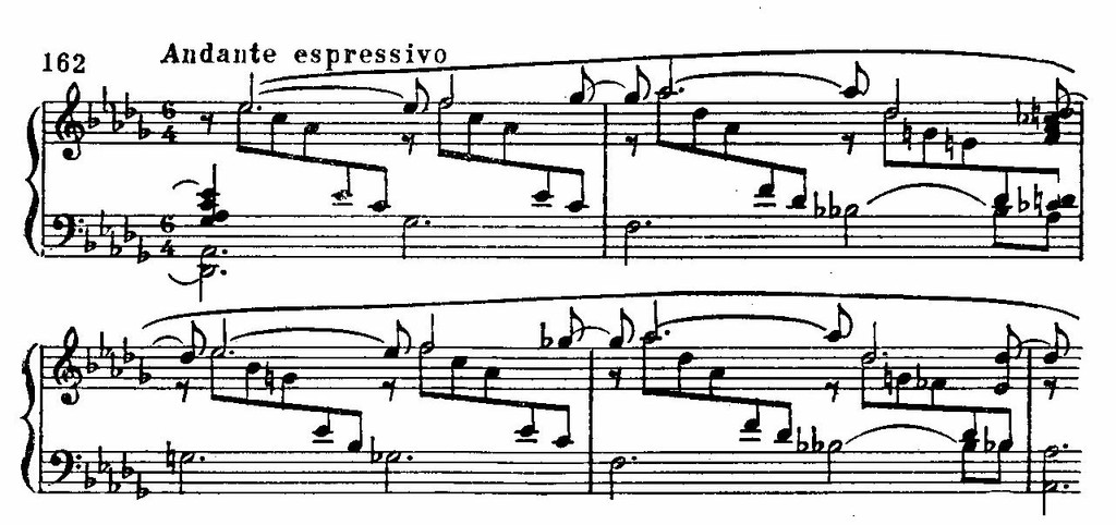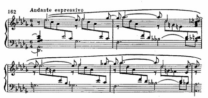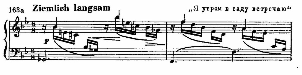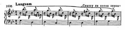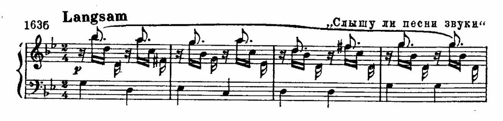 Здесь обобщены элементы сопровождения ряда песен, посвященных теме любовных грез, таких, как «Я утром в саду встречаю» или «Слышу ли песни звуки»: