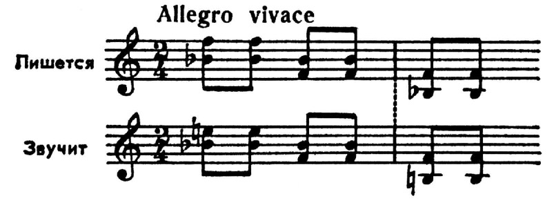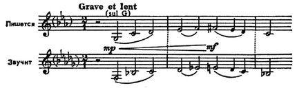 В скрипичной транскрипции Й. Сигети виолончельной пьесы «Песнь странствующего рыцаря» Гнесина настройка ниж. струны понижается на полтона. Тот же вид С. — в симф. поэме «Жизнь героя» Р. Штрауса. К редкому виду скрипичной С. (перестройка верх. струны на тон вниз) прибегает в сюите «Жар-птица» И. Ф. Стравинский, что даёт возможность первой скрипке исполнить глиссандо красочный пассаж, состоящий из натуральных флажолетов в D-dur.