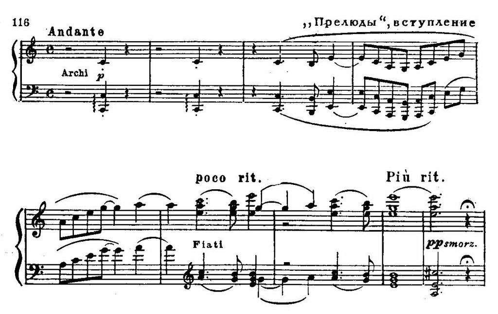 «Чем иным является наша жизнь, как не серией Прелюдий к тому неведомому напеву, первую и торжественную ноту которого интонирует смерть? Любовь образует волшебную зарю всего существования; но в чьей судьбе первое блаженство счастья не было разрушено бурей, смертельное дыхание которой развеяло прекрасные иллюзии, роковая молния разбила алтарь, и чья душа, жестоко израненная, выйдя из таких бурь, не стремится утишить свои воспоминания в блаженном покое сельской жизни? Однако человек не смиряется с длительным наслаждением благословенной негой, которая сперва так очаровала его на лоне природы, и «когда труба пропела сигнал тревоги», он спешит на опасный пост, какая бы война ни звала его в свои ряды, чтобы вновь обрести в борьбе всю полноту самосознания и обладания своими силами».