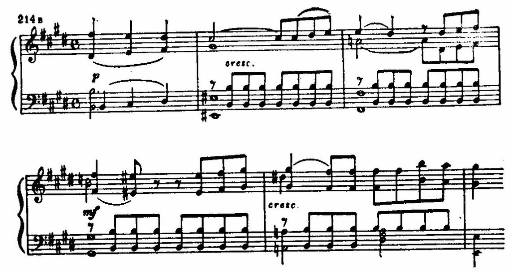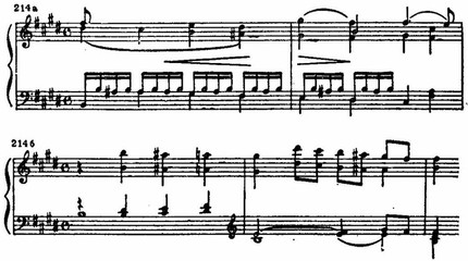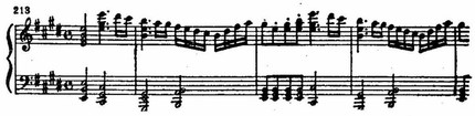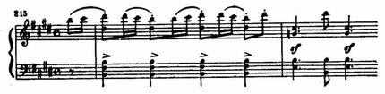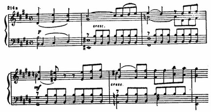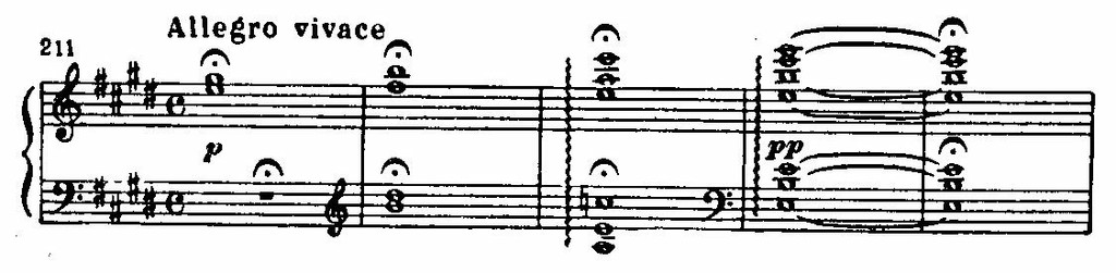 Светлый и радостный колорит экспозиции поддерживается побочным тематическим материалом — фанфарами, которые сопутствуют праздничной второй теме, или, иначе инструментованные, звучат, как колокольчики, в побочной партии.