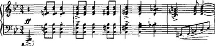 Яркий свет люстр заливает дворцовый зал. В оркестровом tutti звучит традиционная фраза, почти цитата венского вальса. Можно было ожидать ее полного изложения, но композитор внезапно сворачивает с избранного пути (мелодия длится всего восемь тактов) и начинает новый вальс.