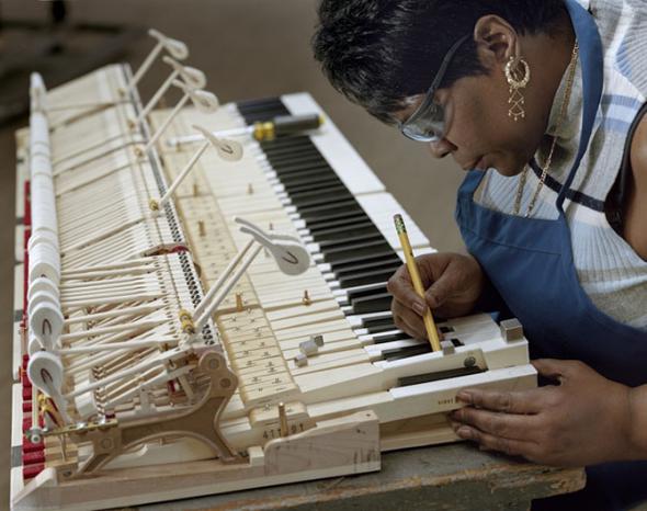 Последующий процесс «озвучивания» представляет из себя детальные регулировки молоточков, определяющие конечное звучания инструмента и, в итоге, индивидуальность каждого инструмента Steinway.