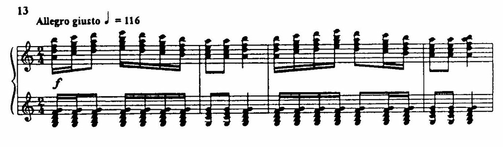 Где искать генезис пианизма «Петрушки»? В произведениях романтиков или импрессионистов? Отчасти да. Но скорее всего его прообраз — «Исламей» Балакирева. И все же автор «Петрушки» в своих открытиях ушел так далеко вперед, что в фортепианной музыке XX века занял место — по праву! — в одном ряду с композиторами, особенно радикально обновившими пианистический стиль, — Бартоком, Прокофьевым. Это тем более удивительно, что, в отличие от них, Стравинский не владел роялем как виртуоз.