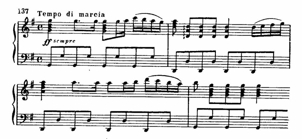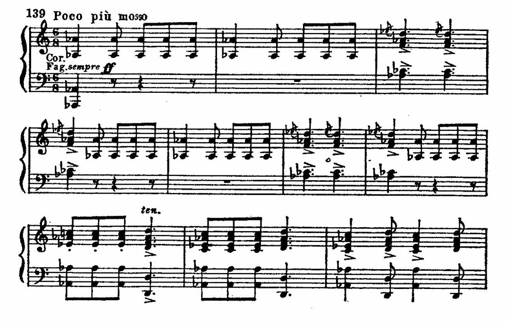 Черные вепри характеризуются другими диссонансами и иным смешением тембровых красок (фаготы и струнные басы):