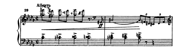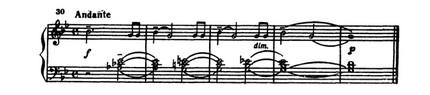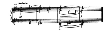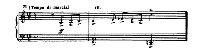 Любопытным примером может служить и конец «Веселого марша», где в тонически окрашенный возглас мелодии вторгается субдоминантовая гармония: