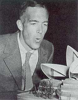 Только в одной конкурсной работе театры поставлены вплотную друг к другу, а проблема стен снята благодаря их отсутствию: ряд веерообразных белых крыш крепится прямо к циклопическому подиуму. Автор проекта предлагал хранить декорации в специальных углублениях, сделанных в массивной платформе: так решалась проблема кулис. Груда отклоненных проектов росла, и члены жюри уже в который раз возвращались к этой поразительно оригинальной работе. Рассказывают, что Сааринен даже нанял лодку, чтобы продемонстрировать коллегам, как здание будет выглядеть с воды. 29 января 1957 года сияющий Джо Кейхилл огласил результат. Победителем стал датчанин тридцати восьми лет, живущий со своей семьей в романтическом уголке близ гамлетовского Эльсинора, в доме, выстроенном по собственному проекту (это был один из немногих осуществленных замыслов архитектора). Трудно произносимое имя лауреата, которое большинству сиднейцев ни о чем не говорило, звучало так: Йорн Утцон.