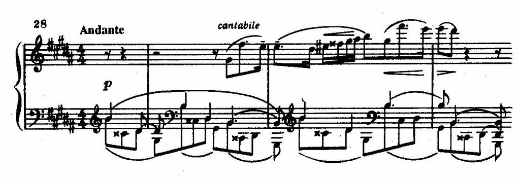 Это произведение создано композитором в 1910 г. Цикл поражает своей контрастностью: утонченной хрупкости и ритмической гибкости прелюдии противопоставляется фуга – волевая, с оттенком героики. Впрочем, контраст заложен уже в музыкальной ткани прелюдии: в то время как в нижнем голосе остинатная фигура уходит все глубже в низкий регистр, верхний голос устремляется все выше – в третью и даже четвертую октавы. Но эти два контрастных элемента имеют общий источник – оба они исходят из интонации септимы. Лирическая экспрессия прелюдии определяет ее стилевой облик – в противоположность классической фуге, прелюдию можно считать романтической. Состояние душевного томления, воплощенное в ней, преодолевается в фуге.