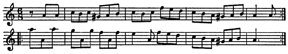 Мелодия народной тарантеллы (запись С. Стораче, опубликована в 1753)