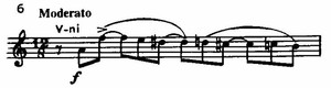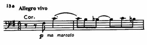 При детальном анализе можно выделить и отдельные короткие мотивы, из которых складываются крупные мелодические построения. Но все звенья мелодии так прочно спаяны между собой и так естественно «перетекают» друг в друга, что вся тема воспринимается как единое неразделимое целое. С этой точки зрения она может служить прекрасным образцом того качества мелодики Чайковского, которое В. А. Цуккерман называет «вторичной широтой».