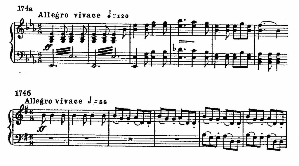 Хор охотников (начало второго акта) гармоническим варьированием разных куплетов (в том числе и посредством неожиданных модуляций) напоминает приемы шубертовских романсов.