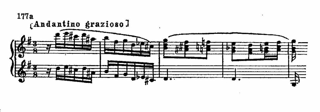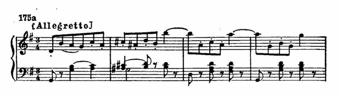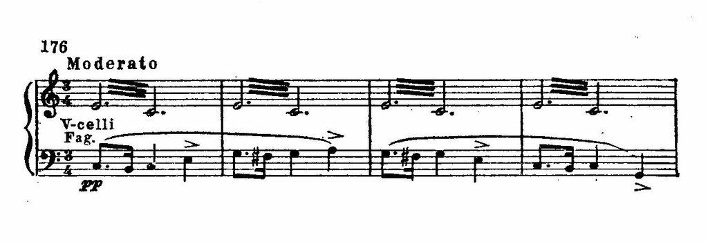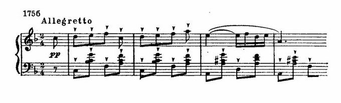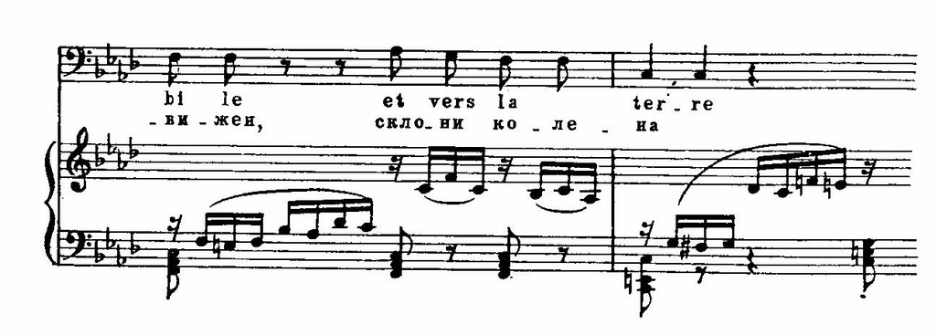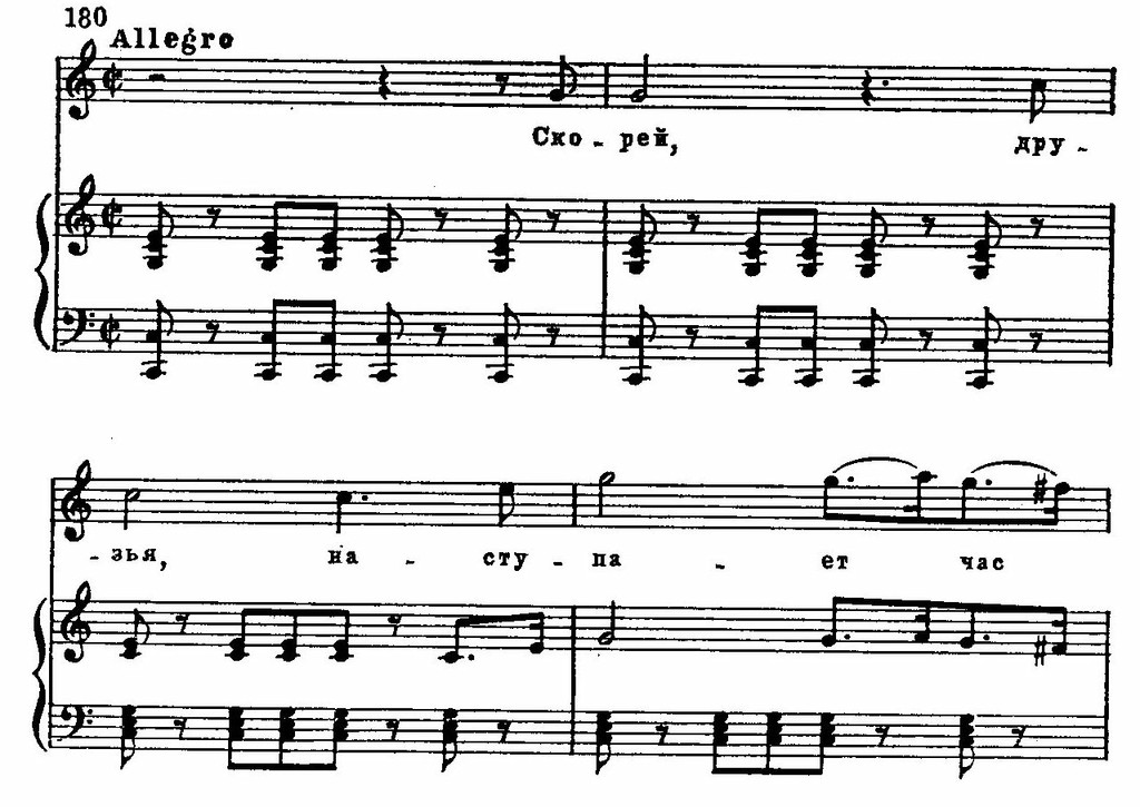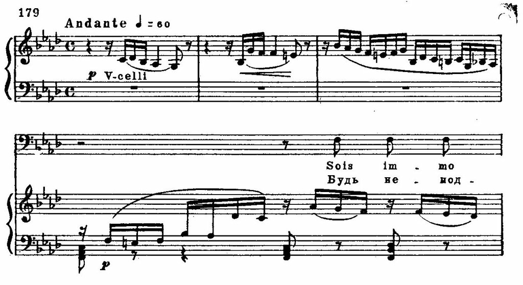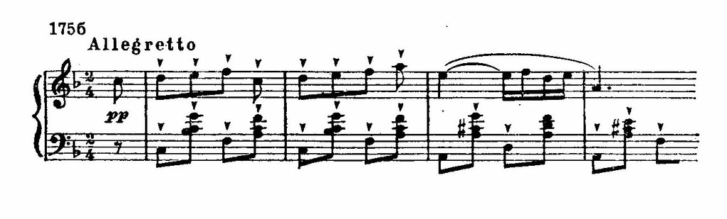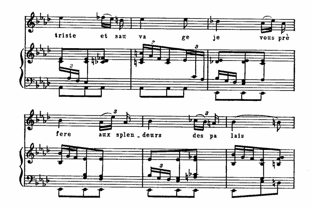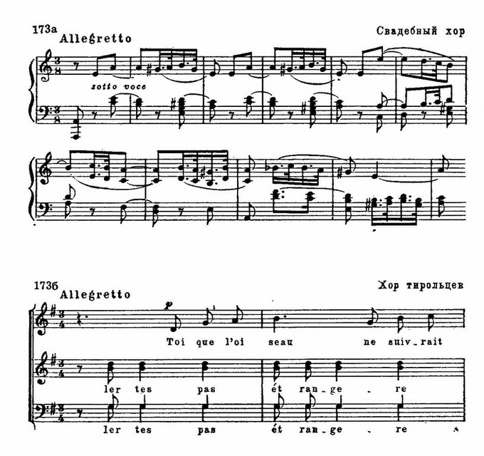 И в лирических образах встречаются сходные приемы, связанные с языком новейшей национальной романтической школы. Так, например, в музыке романса Матильды обращает на себя внимание использование альтерированных звуков мелодии: