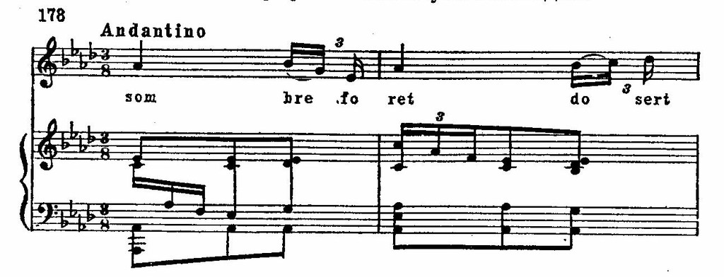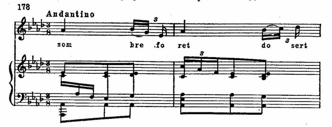 В песенке рыбака баркарольного склада (в первом акте) тонкии эффект создает колебание мажоро-минора и альтерированные звуки в мелодии: