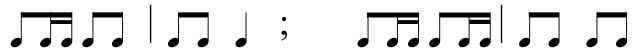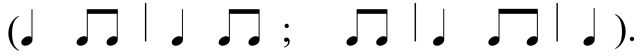 Метроритмика, характерная для Т., встречается в колядках плясового типа (см. кн. : Земцовский И., Мелодика календарных песен, Л., 1975, с. 39, 171), скоморошьих былинах и песнях (см. Сборник Кирши Данилова, М., 1958, NoNo 61, 68), в шуточных (см. сб.: Лядов A., Песни русского народа, М., 1959, No 114), плясовых и хороводных песнях (см. сб.: Балакирев М., Русские народные песни, М., 1957, NoNo 20, 35; Римский-Корсаков Н., Сборник русских народных песен ор. 24, NoNo 26, 32, Полн. собр. соч., т. 47, М., 1952).