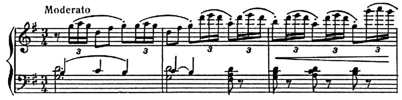 Т. обозначается цифрой 3, к-рая пишется в нотах над или под триольной группой. Т. может встретиться и в сочетании с четырьмя долями осн. ритмич. деления в др. голосе, напр.: