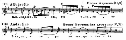 Но не только этими номерами славится музыка «Трубадура». В опере, по меткому слову Лароша, «ярким пламенем горит гений Верди». Композитор создает неиссякаемое богатство певучих мелодий, надолго врезывающихся в память. Мелодии эти не только вокальны и красивы — они правдиво характеризуют действующих лиц и ситуации. Богата таким мелодизмом партия Азучены: