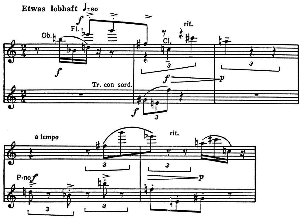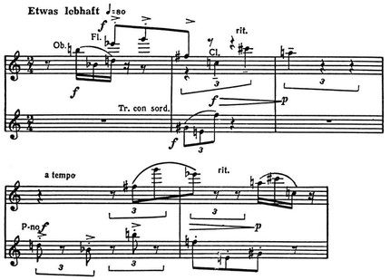 А. Веберн. Концерт ор 24, 1-я часть. Возрастающая и убывающая прогрессия ритма.