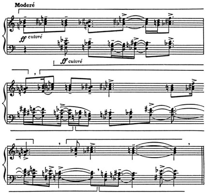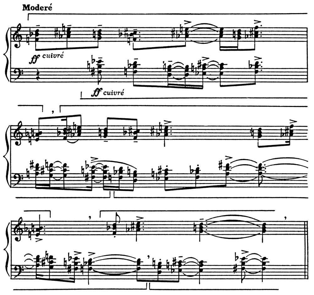 О. Мессиан. Epouvante. Пример No 50 из 2-й части книги «Техника моего музыкального языка».