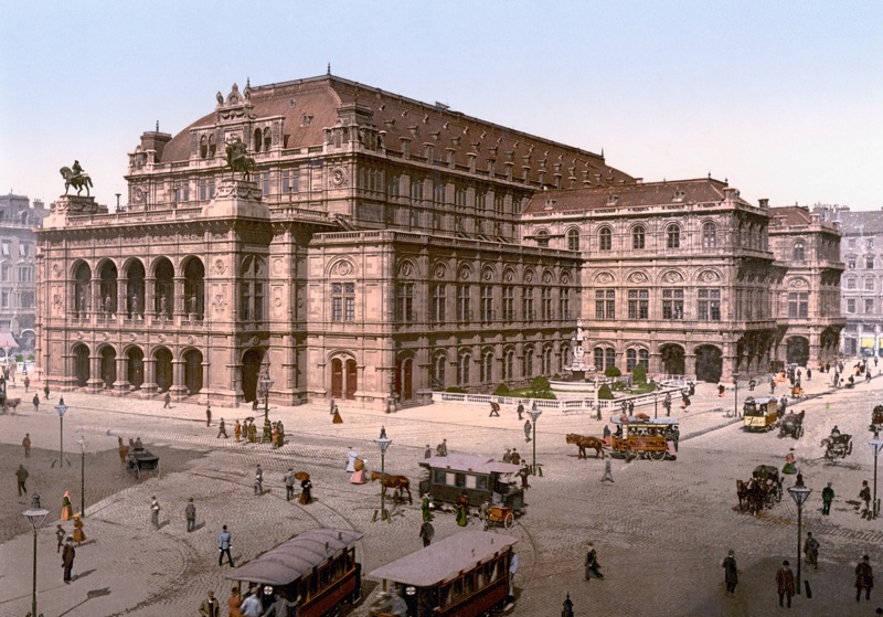 Театр был открыт постановкой «Дон-Жуана» Моцарта. В 1875-1897 годах музыкальным директором и главным дирижёром театра был Х. Рихтер, выдающийся интерпретатор вагнеровских опер. При нём были осуществлены постановки тетралогии Вагнера «Кольцо нибелунга», цикла моцартовских опер, «Отелло» Верди. В 1897 году во главе театра становится выдающийся композитор и дирижёр Густав Малер. В течение десяти лет его руководства Венской оперой этот театр стал одним из лучших в Европе. Малер привлёк к работе таких выдающихся мастеров, как Бруно Вальтер, Франц Шальк. Именно в этот период на сцене Венской государственной оперы впервые ставятся «Евгений Онегин», «Пиковая дама» и «Иоланта» П. И. Чайковского.
