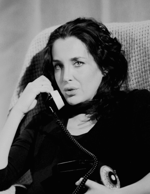 «Небольшая сцена представляет собой угол женской спальни. Это мрачная синеватая комната с небрежно покрытой постелью — слева и с полуоткрытой дверью в белоснежную ванную — справа. Перед суфлерской будкой — низкое кресло и столик, на нем телефон и лампа, льющая резкий свет. Занавес поднимается. Комната. Кажется, что здесь совершено преступление — перед кроватью в длинной сорочке распростерто женское тело. Оно кажется безжизненным. Тишина... Женщина приподнимается, меняет позу и снова впадает в неподвижность. Затем, словно решившись на что-то, она встает, берет пальто с постели и, помедлив перед телефоном, направляется к двери. Как только она коснулась дверной ручки, зазвенел телефон. Она бросается к нему. Пальто мешает ей, резким ударом ноги она отбрасьюает его в сторону и снимает трубку. С этой минуты она говорит стоя, сидя, спиной к зрителям, лицом к ним, в профиль, на коленях, за спинкой кресла, то положив на нее голову, то прислонясь спиной, шагая по комнате, таща за собой телефонный шнур до предела, пока, наконец, не падает ничком на кровать. Голова ее безжизненно повисает, и трубка, выпав из рук, словно камень, со стуком падает на пол» (Жан Кокто, член Французской академии).