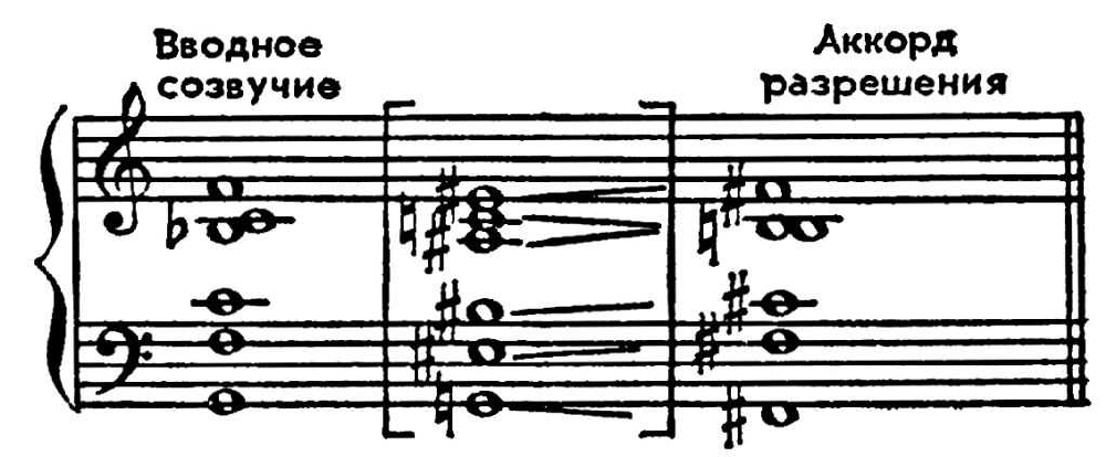 Вводный тон — неустойчивый звук лада, расположенный на секунду ниже или выше I ступени и тяготеющий к ней. Звук VII ступени, как прилегающий к I ступени снизу, называется нижним В. т.; звук II ступени — соответственно верхним. В. т. обладают наиболее интенсивным мелодич. тяготением к главному звуку лада, в особенности В. т., отстоящий от него на малую секунду вниз (в натуральном и гармонич. мажоре и гармонич. миноре это звук VII ступени — лат. subsemitonium modi, нем. Leitton, фран. note sensible — «чувствит. нота», англ. leading note). Нижний В. т. является терцией аккорда V ступени и имеет доминантовую функцию. Под «вводнотоновостью» часто подразумевают специфич. остроту малосекундового, полутонового тяготения. Как выявление и обострение потенциальной «вводнотоновости» может рассматриваться всякая мелодич. альтерация, создающая как бы искусственные хроматич. В. т.