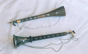 Имеет ствол с раструбом, 8 игровых отверстий. В верхний конец ствола вставляется деревянная втулка с вилкой. При поворотах втулки концы зубцов частично прикрывают 3 верхних игровых отверстия, чем достигается дополнит. подстройка инструмента. Во втулку вставляются латунный штифт, на к-рый надевается круглая розетка (из рога, кости, перламутра, металла) для опоры губ исполнителя, и маленькая трость из сплюснутой тростниковой трубочки. Обычно зурна снабжается запасными тростями, к-рые, как и розетка, привязываются к инструменту цепочкой или ниткой. Для предохранения трости на неё после игры надевают деревянный футляр.