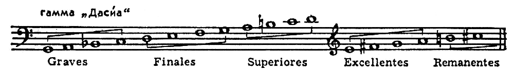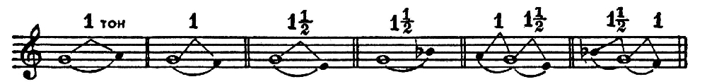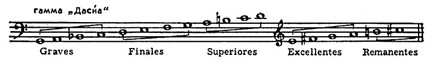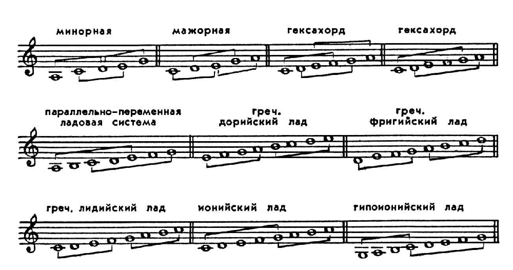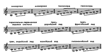 При этом прилегающие и проходящие тоны стабилизируются и становятся опорами для новых прилегающих. На основе тетрахорда возникают пентахорды, гексахорды: