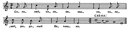 Напев племени кубу (Суматра) — любовная песня юноши. По Э. Хорнбостелю.